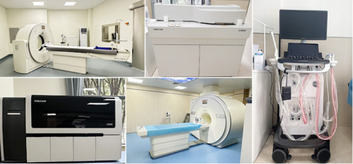 医院配有MRI核磁共振、多排多层螺旋CT机、DR数字化X线机、全自动化学发光免疫检测系统、重症呼吸机。此外,医院还配备有神经(精神心理)临床系统的器械设备,如:磁刺激仪、超低频经颅磁刺激仪、经颅刺激仪、脑电仿生电刺激仪、脑循环功能障碍治疗仪、脑电生物反馈治疗仪等。